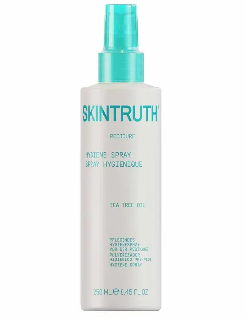 O spray higiénico para pedicure Skintruth é perfeito para tratamentos de pedicure, ajudando a limpar e evitar infeções decorrentes dos tratamentos. O produto contém óleo da árvore do chá, conhecido pelas suas propriedades purificantes naturais.